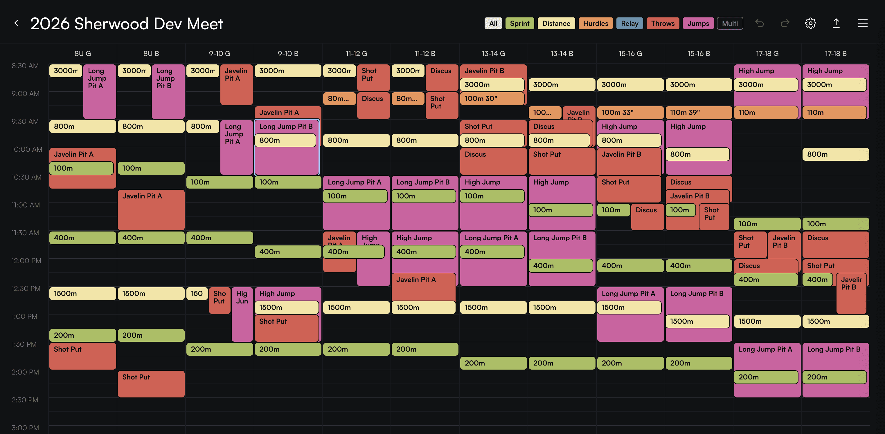 Athletes are required to register for their events before the meet starts. Changes cannot be made after Wed 7pm, no exceptions. We will take care of and pay for your events registrations. Just indicate here which events they would like to do. Athletes age 8 and under can choose up to 3 events. All others can choose up to 4 events.